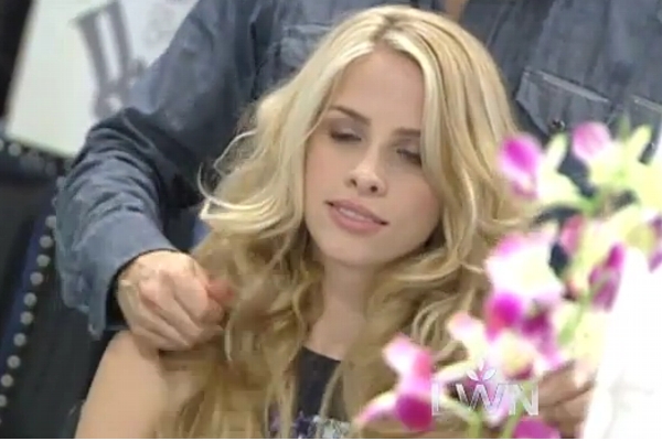 Remove clips and brush hair back.