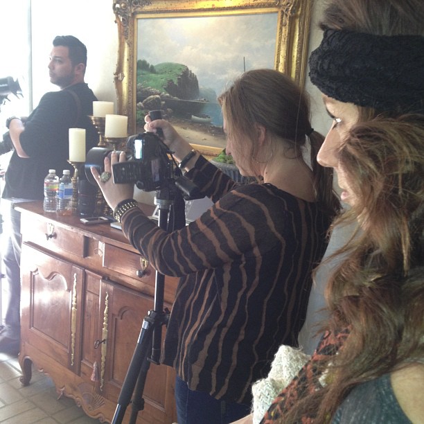 Therapy hairstylist Kelli Schroeder looks on as photographer Julie Soefer works her magic.
