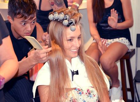 To achieve this soft messy updo’s we used Kevin Murphy hair rollers to set the curls.